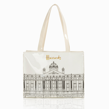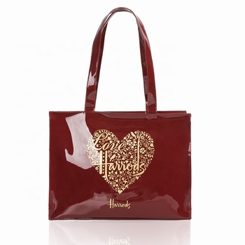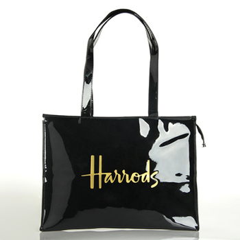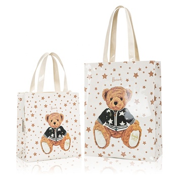 แฟชั่นกันน้ําคุณภาพสูงพิมพ์โลโก้ที่กําหนดเองกระเป๋าถือ PVC harrods กระเป๋าช้อปปิ้งสิริ